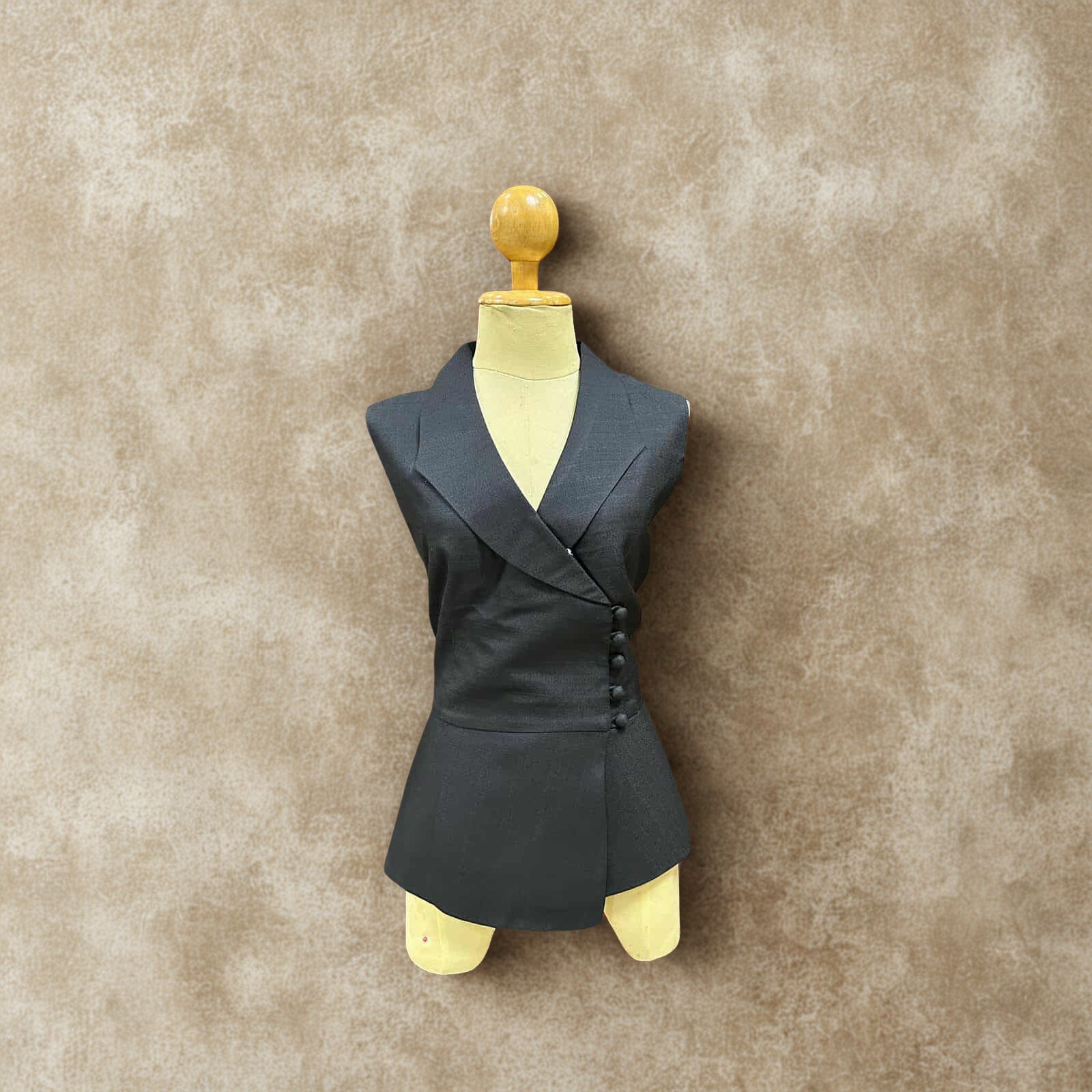 A modern take on traditional tailored Lao shirt often paired with sinhs. Sleeveless and structured with a wrap design and side button details create a flattering silhouette that’s perfect for formal or festive looks. Made from a synthetic blend fabric, these tops have a subtle shimmer and soft texture, giving the look of raw silk without the delicate maintenance.