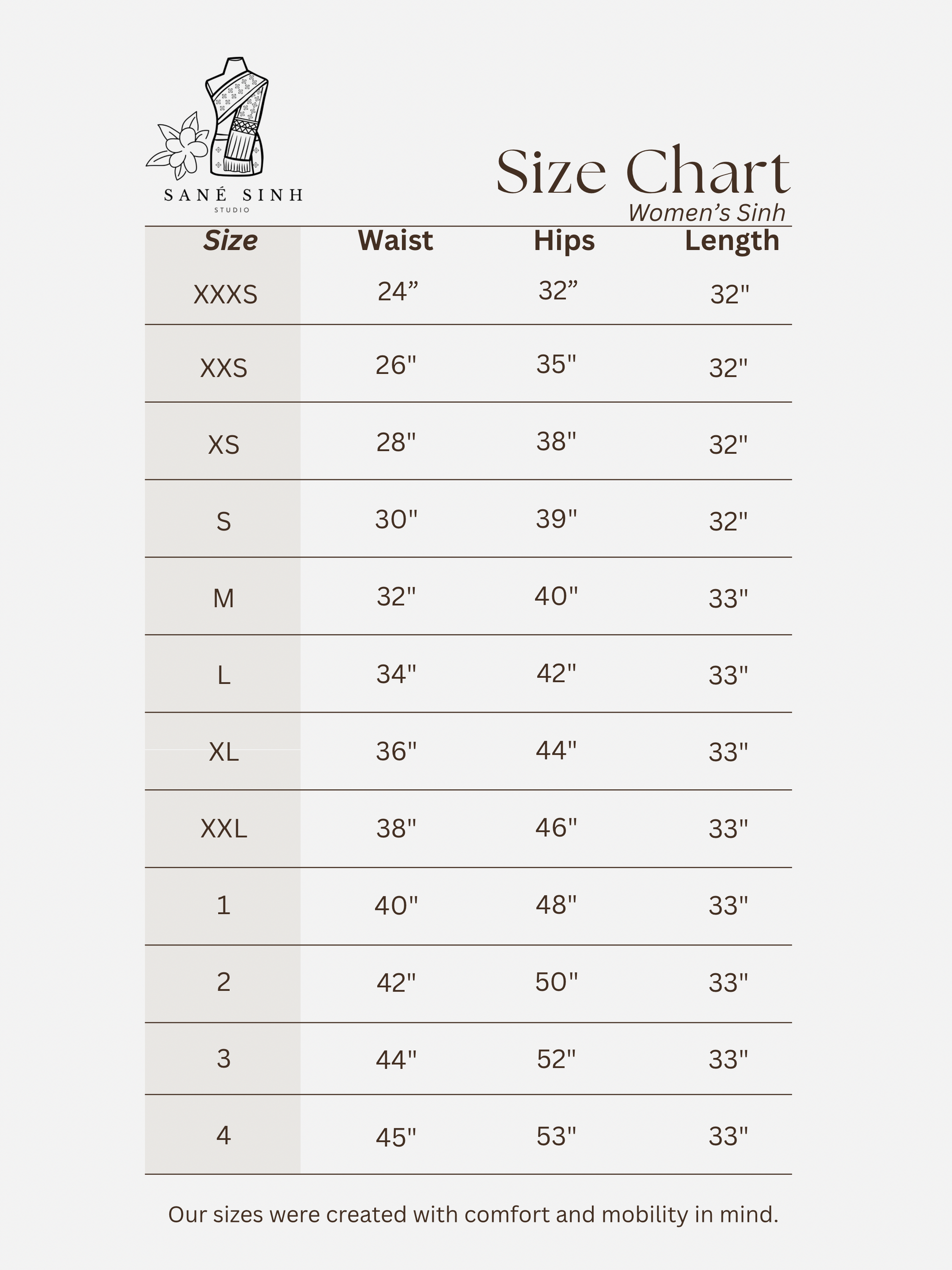Each sinh is machine-woven for consistency but hand-sewn traditionally by Lao seamstresses, supporting real artisans trained in Lao traditional techniques and authenticity.