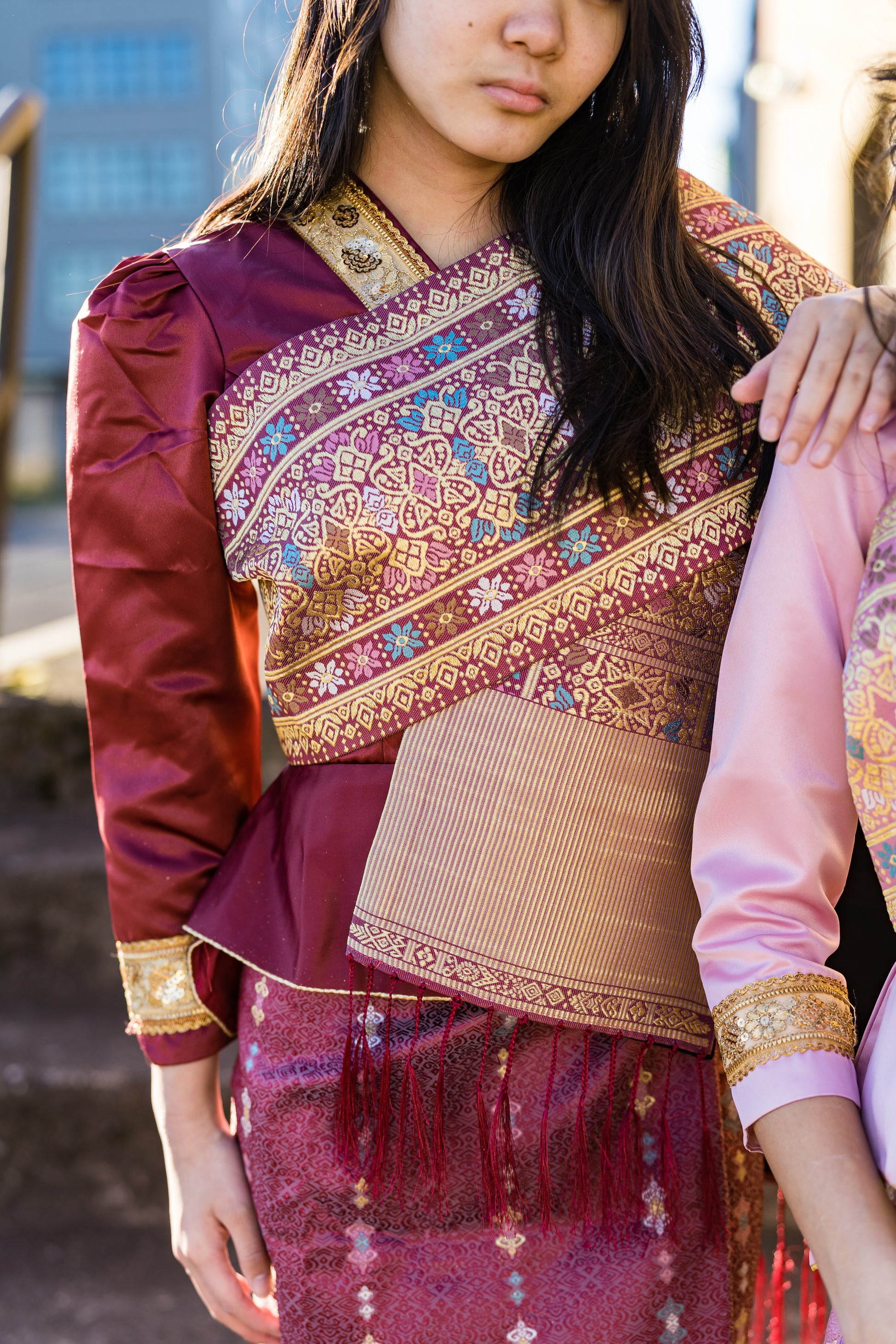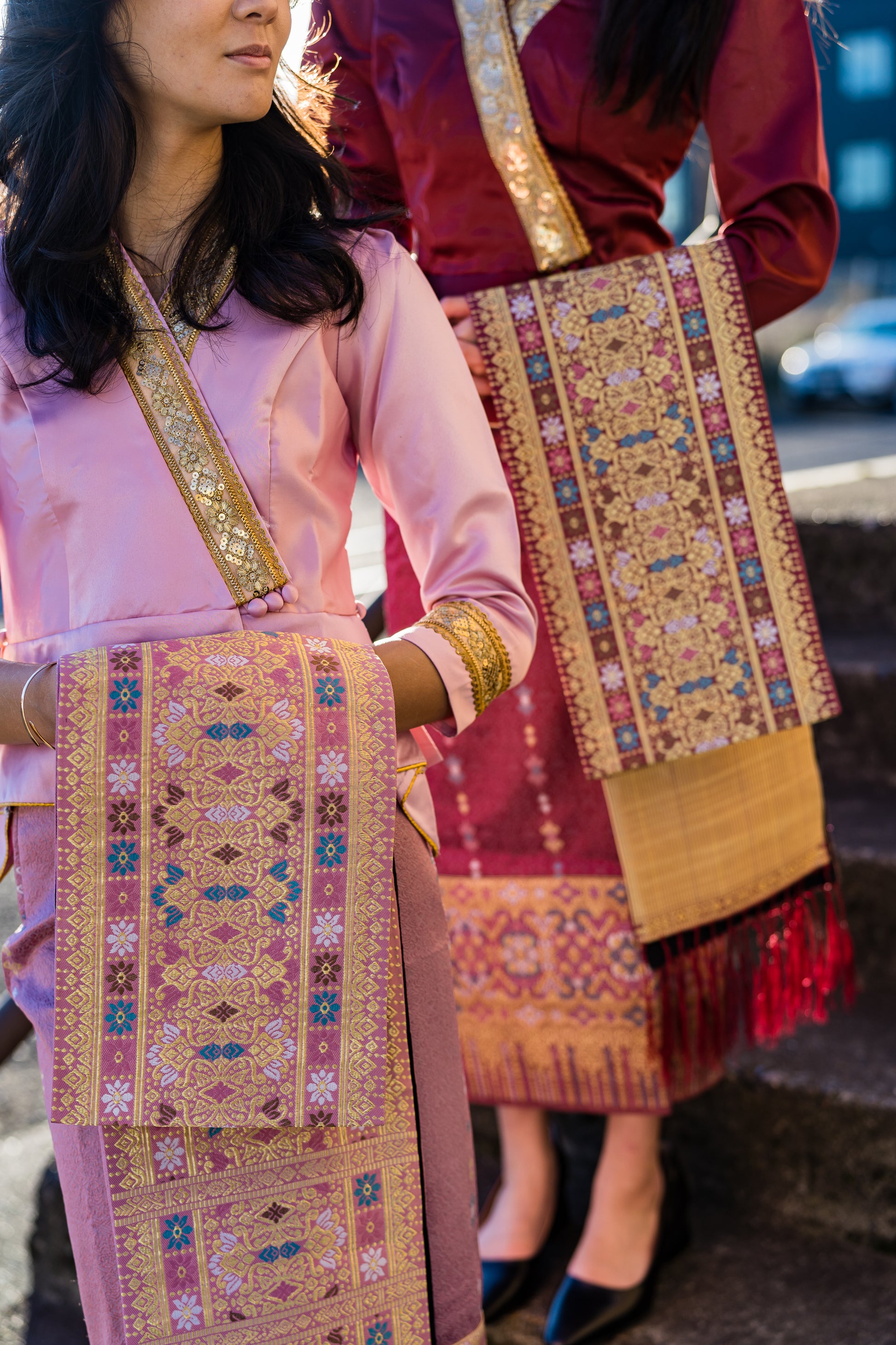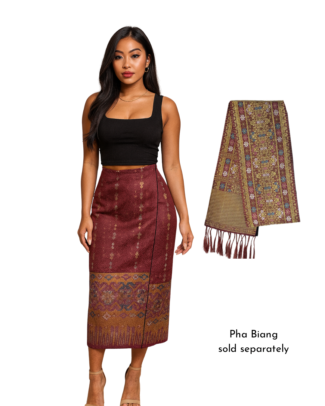 Finish your look with a matching Winter Jewel Pha Biang, created in the same colorway as each sinh. These pieces add the perfect sparkle whether you’re dressing up, layering for photos, or styling a modern Lao fusion outfit.