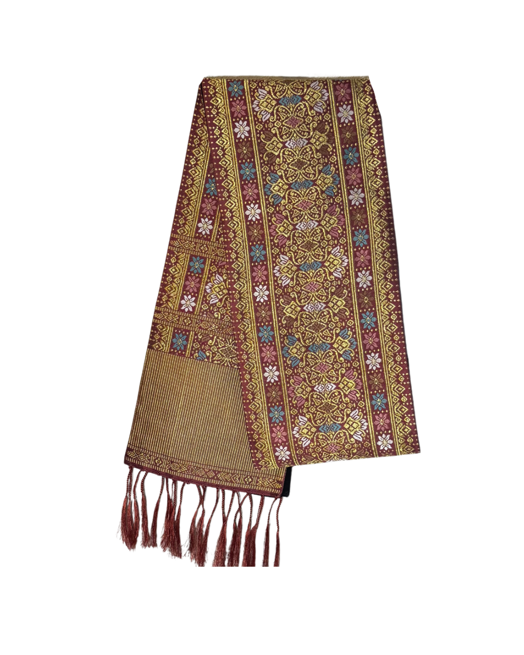 Made from the same synthetic Lao silk blend, the pha biang has a soft sheen and lays beautifully for draping styles.